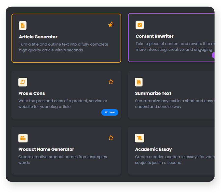 Pilih dari beragam alat AI untuk menulis iklan media sosial, bagian pahlawan, postingan blog, esai, dll...